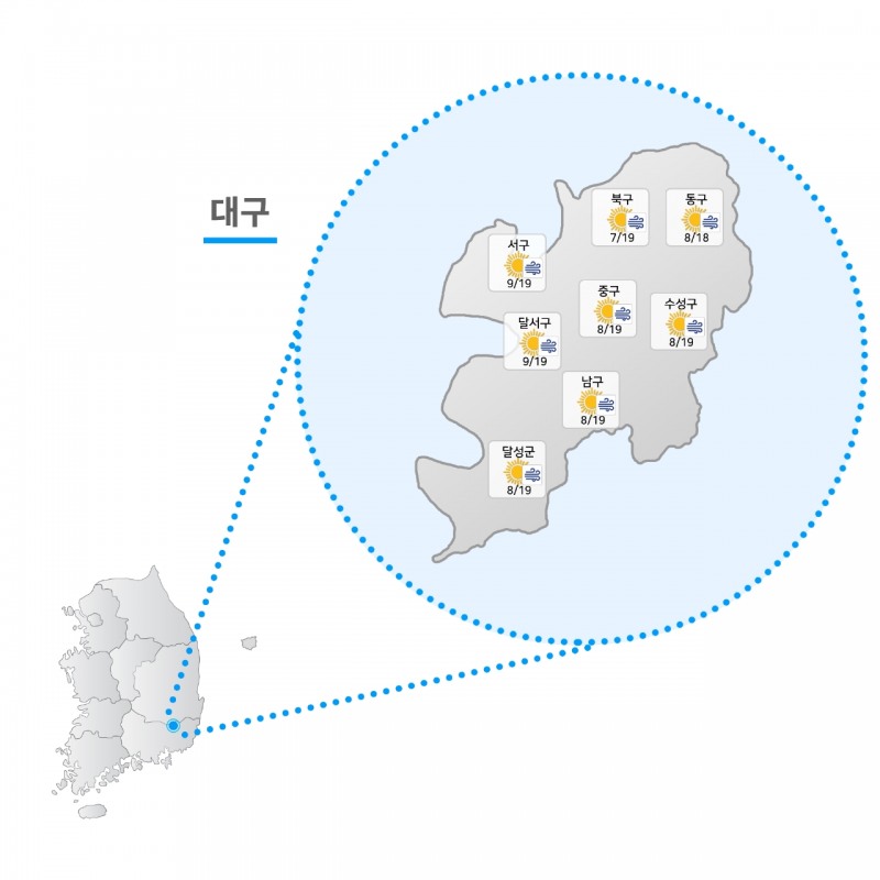 대부분 지역의 낮 기온이 30도 이하의 분포를 보이겠다. 한낮에도 서울 16도, 강릉과 대전 17도, 광주 19도, 대구 20도로 어제보다 4도 가량 낮겠습니다. 그런데 오늘 밤부터 또 비 소식이 있고, 모레인 일요일까지 전국에 비가 올 예정입니다. 대구 수성구 동성시장에 볼일이 있어서식구들이랑 둘러봤습니다대구시에서 낙후된 시장을 예술인들에게 임대해서좋은 그림을 만들려고했었는데 ㅎㅎ코리안행정. 대구대 캠퍼스에 평화의 소녀상을 세운 사연은?